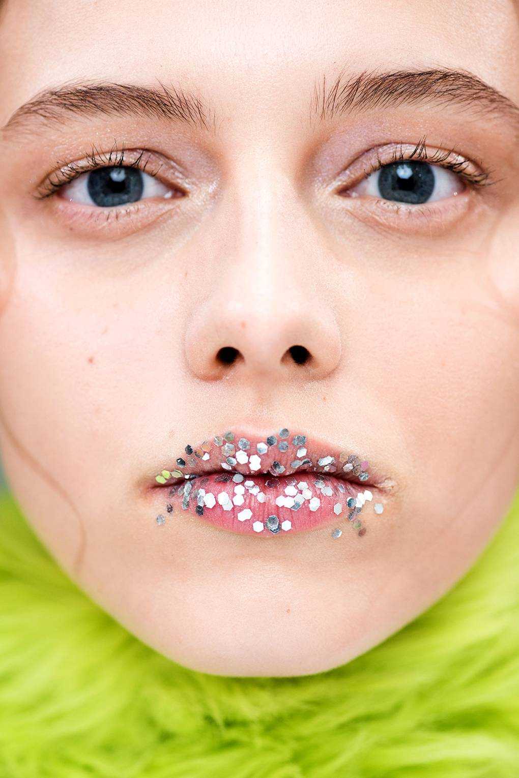 Если говорить о макияже, то можно обойтись только повеками и губами. Глиттер липнет к лицу с помощью жирной основы: крем, обычный блеск для губ, подводка с гелиевой текстурой.