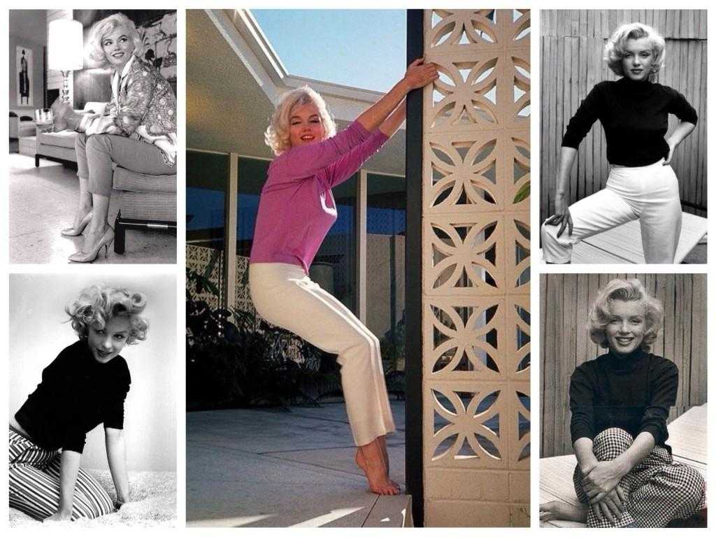 Мэрилин выбирала гладкие ткани и предпочитала простые базовые цвета — черный, серый, белый или бежевый. Расклешенные летящие юбки также присутствовали в гардеробе звезды — она сочетала их с рубашками или укороченными топами.