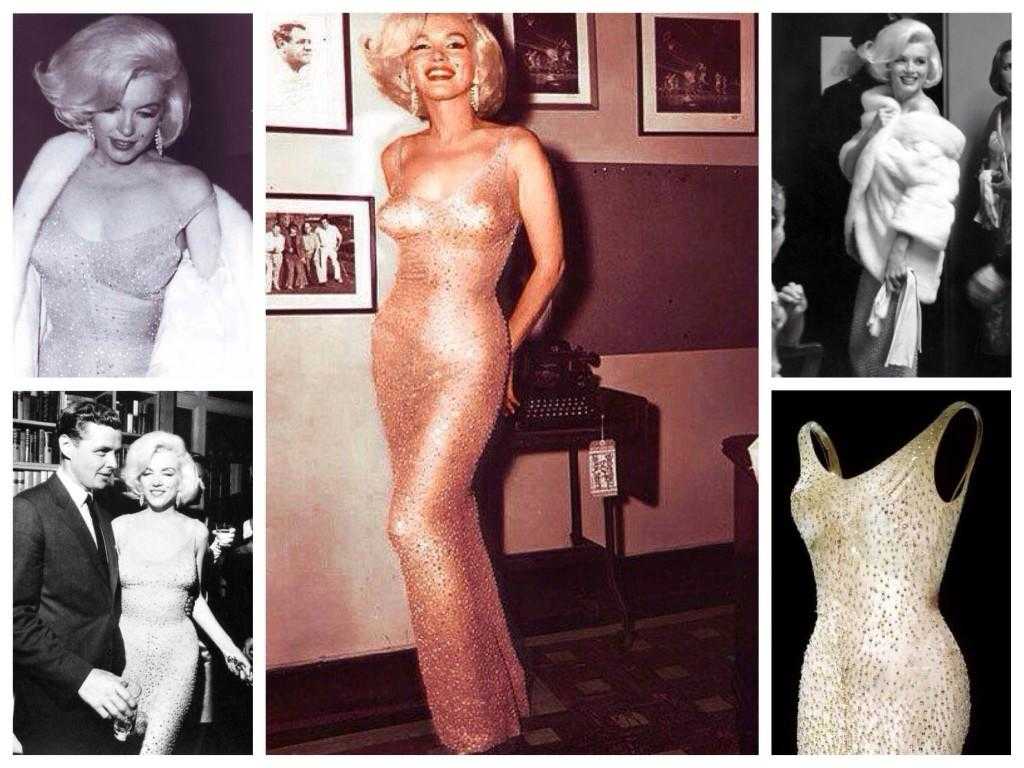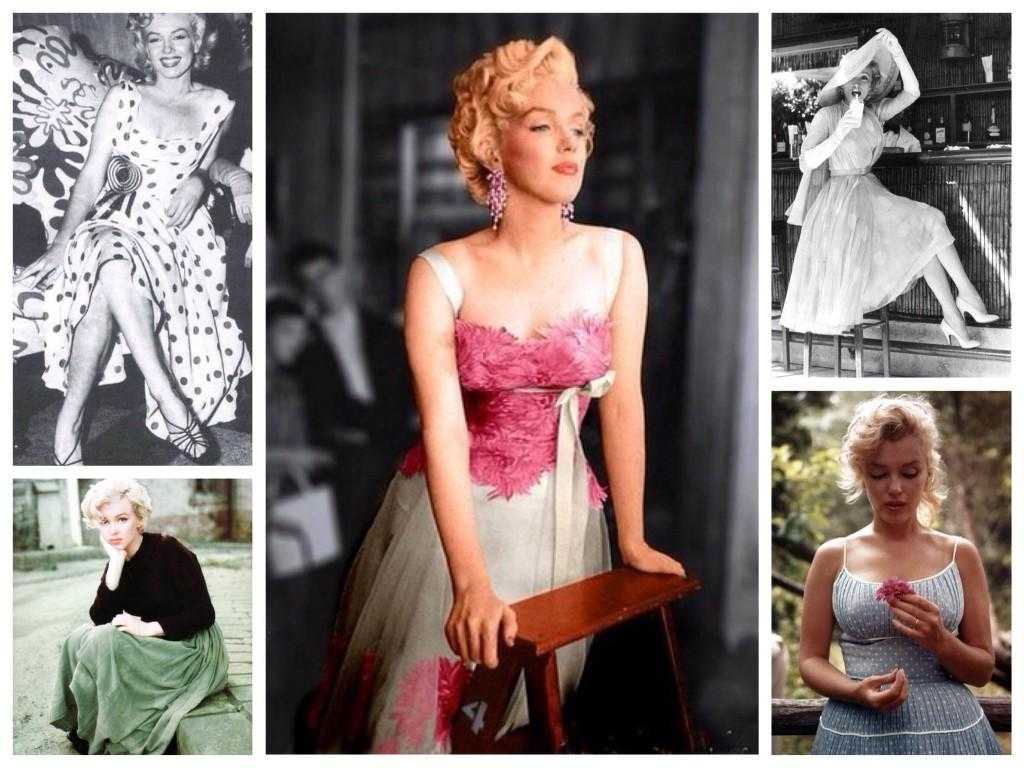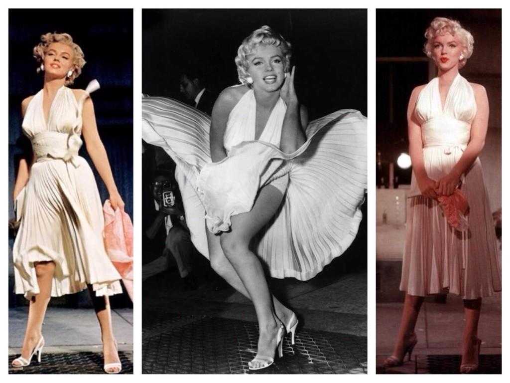 Многие платья Мэрилин Монро стали знаковыми и узнаваемыми: белоснежное платье с глубоким вырезом и летящей плиссированной юбкой, так эффектно запечатленное на фото развевающимся на ветру. Полупрозрачное облегающее, украшенное стразами, телесного цвета платье, в котором актриса поздравляла президента с днем его рождения (несмотря на его кажущуюся легкость, вес его составлял несколько килограмм). Цикламеновое платье-бюстье с бантом и перчатками в тон из фильма «Джентльмены предпочитают блондинок» (на следующем фото). Черное платье с белым бантом на груди — все они стали одними из самых узнаваемых в истории моды предметами гардероба.