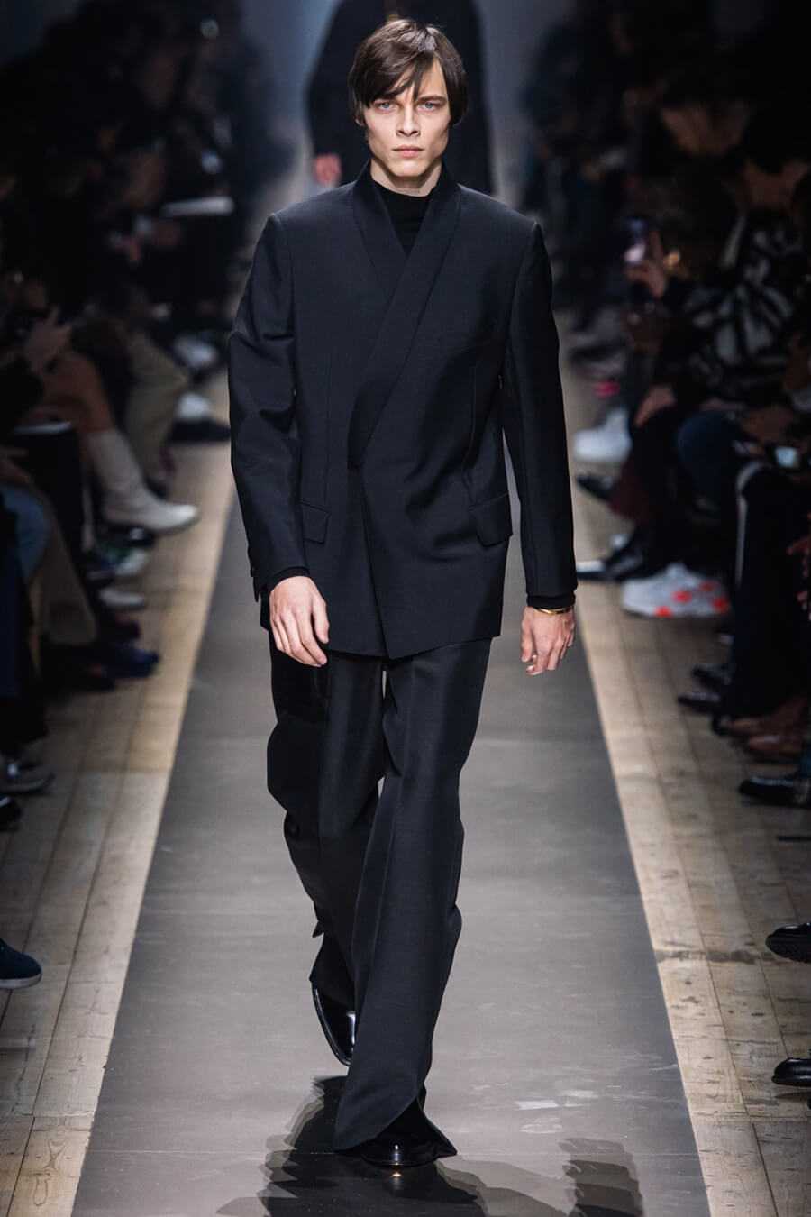 Классические мужские костюмы всегда в моде независимо от трендов и времени года. Специально для осенне-зимнего сезона дизайнеры создали элегантные классические модели в черном цвете. Костюмы лишены дополнительных деталей, благодаря чему прослеживается сдержанная строгость. По мнению стилистов, это универсальный комплект, который должен быть в гардеробе каждого мужчины.