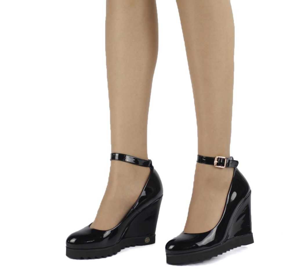 скошенный каблук – подобное решение удивляет тем, что сохраняет устойчивость вопреки законам физики. Кажется, женщине будет крайне неудобно в подобной обуви, но мастера обувного дела сумели найти баланс и создали практичные, но необычные внешне пары с каблуком, более напоминающим Пизанскую башню;