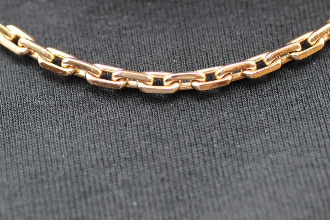 В цепочках из золота с «Якорным» плетением используется наиболее простая технология крепления звеньев. В таких изделиях одно звено расположено под перпендикуляром к другому. Этот узор по структуре напоминает самую настоящую корабельную цепь.