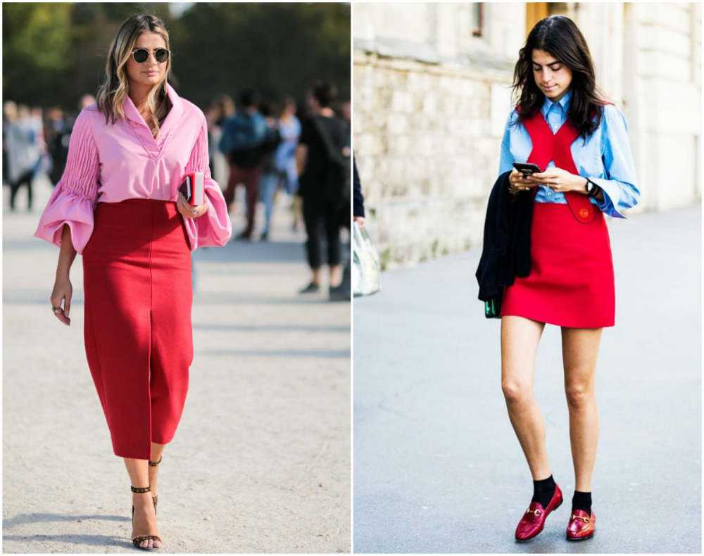 Ниагара и красный – стильное сочетание цветов в одежде 2019, которое идеально подходит для ярких и уверенных в себе женщин.