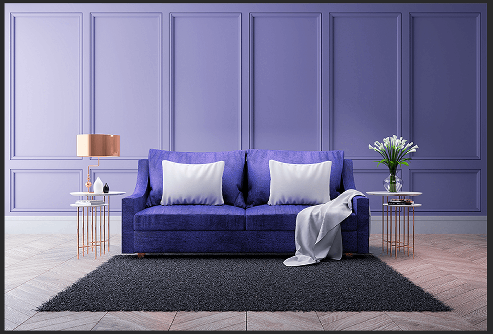 Пурпурный — это «теплый» цвет с яркой индивидуальностью, который, если его не дозировать, может легко превратиться в китч. Как этого избежать? Однозначно лучше сделать акцент на аксессуарах, которыми могут быть ковры, шторы, украшения, картины или подушки.