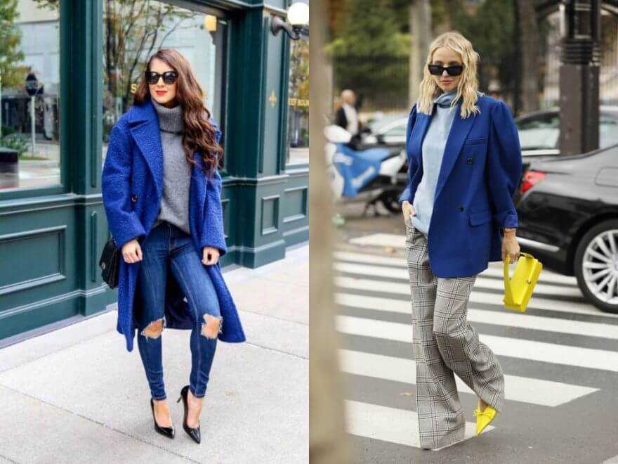 Уличная мода любит классический синий за его универсальность: он идет блондинкам и брюнеткам, высоким и низким, стройным и полным. При этом одинаково удачно сочетаясь как с джинсами и кедами, так и с деловыми костюмами и вечерними платьями.