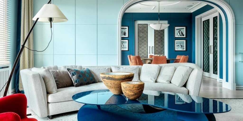 Умиротворение и спокойствие, которое привносит этот оттенок, было по достоинству оценено производителями красок, мебели и домашнего текстиля. Поэтому каждый желающий смог подобрать подходящую деталь интерьера в синем цвете.