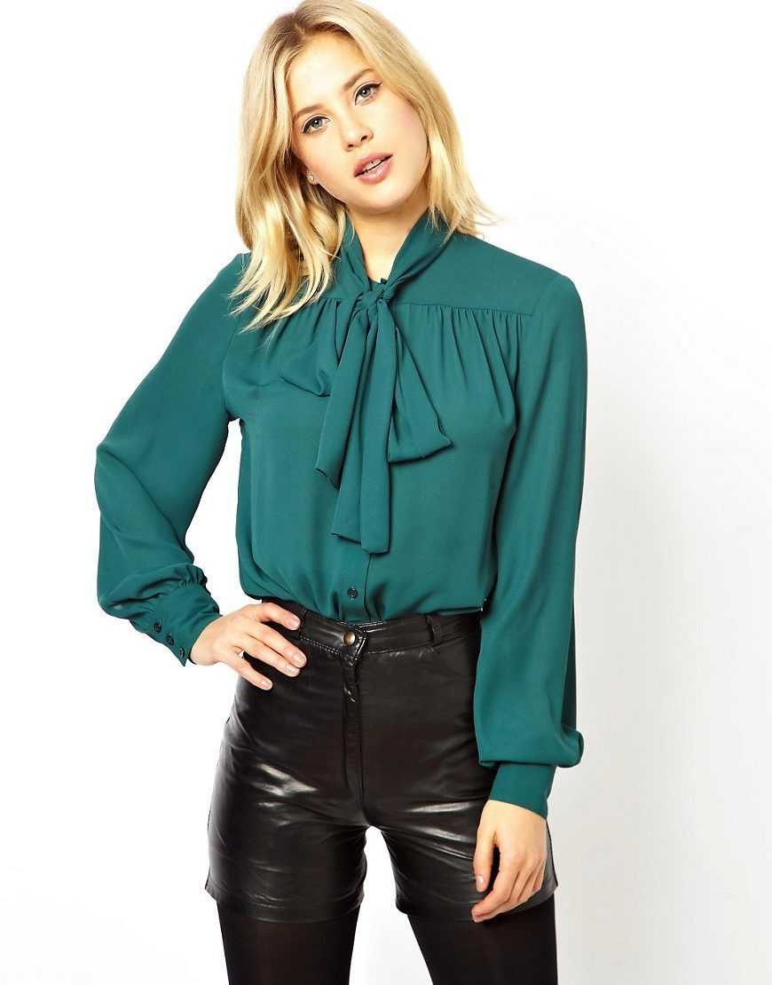 Что касается офиса, то сюда уже нельзя будет надеть яркие виды блузок. На смену им дизайнеры предлагают однотонные блузки с бантом под прямую юбку с туфлями на каблуке. Блузка с металлическим оттенком замечательно подойдет для вечернего свидания. Также можно выбрать оттенки золота или серебра, прозрачную блузку без рукавов с наглухо закрытой передней частью, однако, с откровенно открытой взору спиной