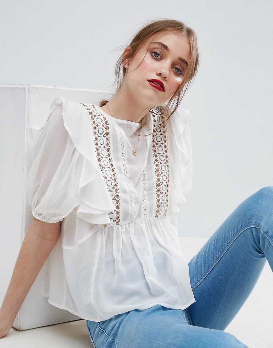 Плечи . Универсальной станет блуза, воланы в которой расположены на плечах. Такие модели напоминают испанские мотивы в одежде и подходят для летнего образа.