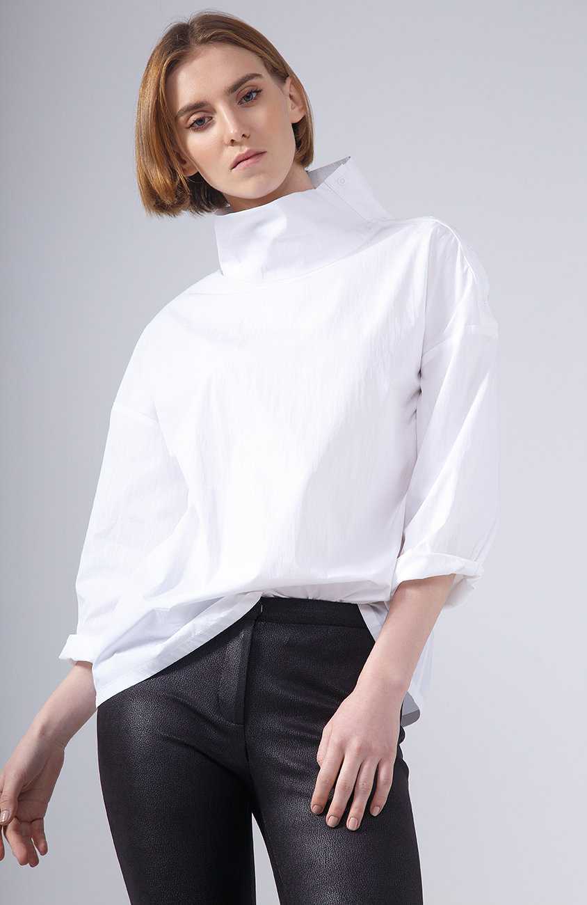 Для блузы с высоким воротником очень тщательно выбирается конструкция и материал, ведь элемент одежды должен будет стоять, а не лежать на шее. Поэтому не стоит недооценивать воротник-стойку, его правильный выбор творит чудеса – может удлинять визуально шею, расширять лицо, регулировать линию плеч и даже изменять силуэт, делая его стройнее.