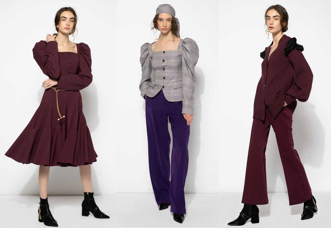 Виноградный компот – темно-фиолетовый цвет, охлаждающий образ. Он достаточно яркий, но при этом не бросается в глаза. Как и классический синий придает образам элегантности и прекрасно смотрится на вечерних платьях.