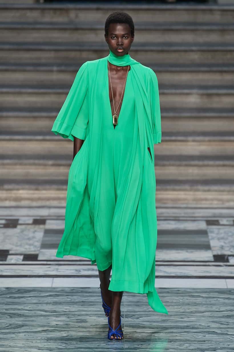 Выбирая модные платья зимой 2022 дизайнеры рекомендуют не ограничивать себя в выборе цветов. Черный, считавшийся несколько сезонов подряд базовым и остро модным этой зимой присутствует на коллекциях только в качестве контрастной отделки.