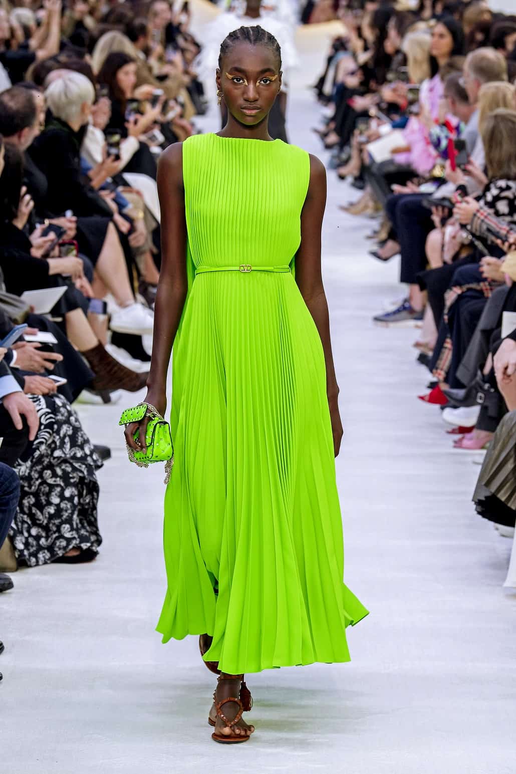 Плиссировка стала ключевым трендом 2021, теперь ее можно увидеть не только на юбках, но и на платьях разной длины и цвета. Плиссировкой вдохновились Balmain, Valentino, Chloé. В отличие от Chloé, Balmain и Valentino показали спортивную версию плиссе, первые – в виде динамичного дизайна с открытыми участками тела, вторые – в ярких неоновых цветах.