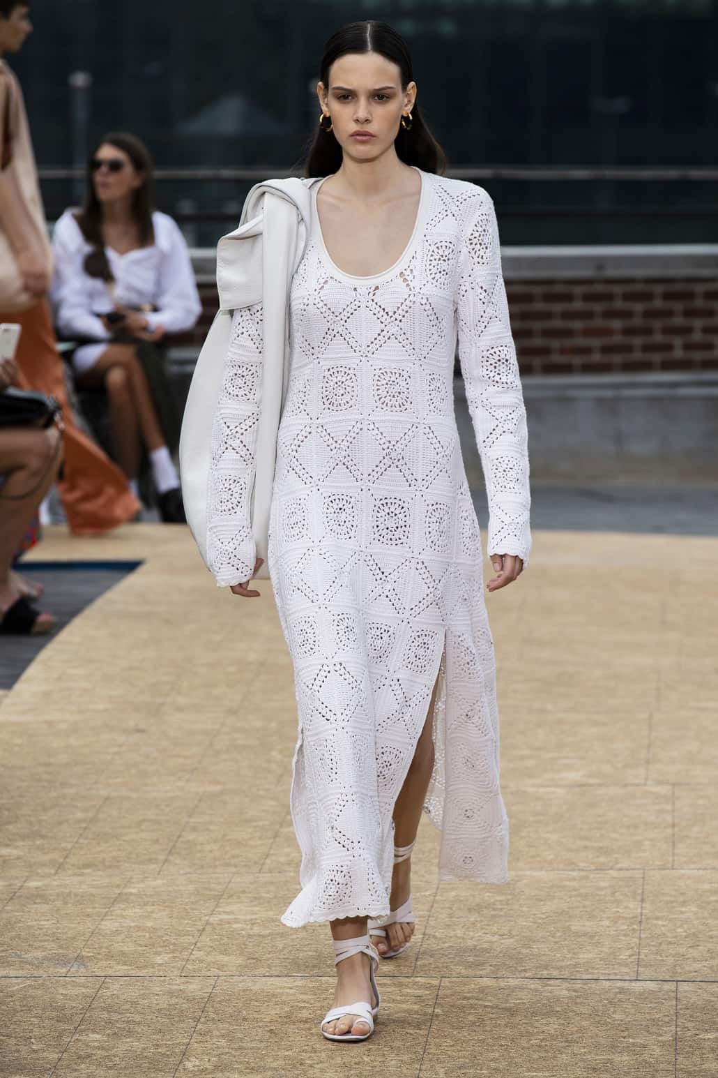 Эстетика кантри вдохновила модельеров на создание платьев крючком. Кружевные, сетчатые, выполненные в технике кроше, платья выглядят, словно сошли с плакатов о крестьянской жизни. Белые, вязаные крючком, модели показали Dior, Celine, Alexander McQueen.