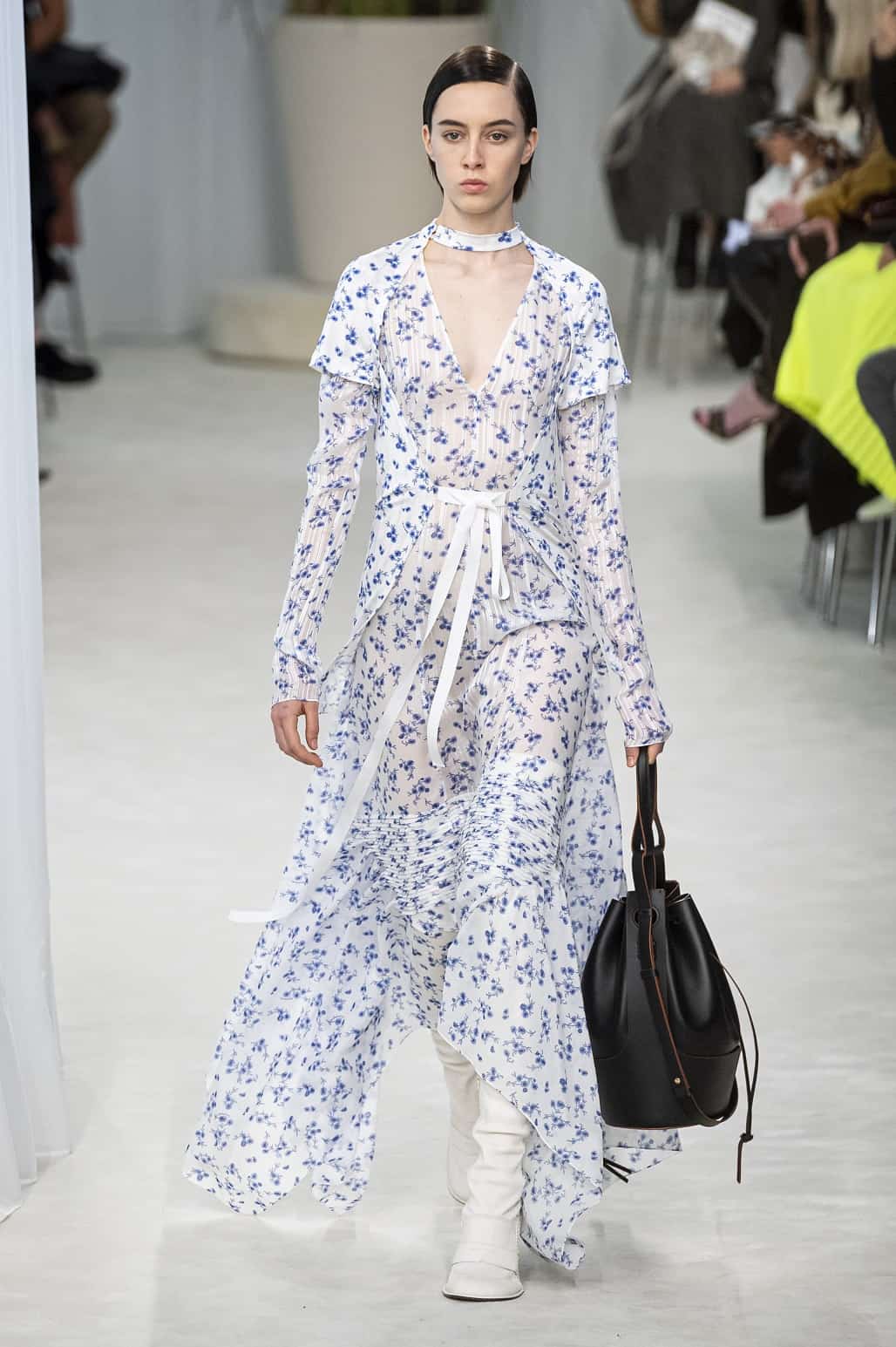 Оборки, рюши и воланы неизбежно входят в моду каждую весну. В этом сезоне дизайнеры комбинируют их с цветочным принтом в рамках образов в кантри-стиле, где нежные платья сочетаются с сапогами из замши и широкополыми шляпами, как на показе Celine. Но также модно сочетать нежные платья с аксессуарами в спортивном стиле. Такой контраст продемонстрировали Loewe.