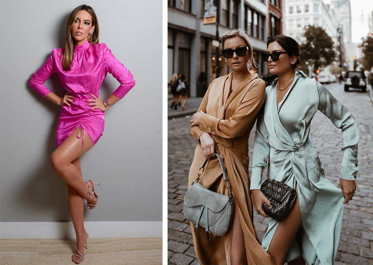 Тренд сезона серебристый металлик популярен также и в платьях. Вообще, очень в моде любые переливающиеся, отсвечивающие цвета. Платья из атласа особо актуальны именно из-за свойства ткани отсвечивать.