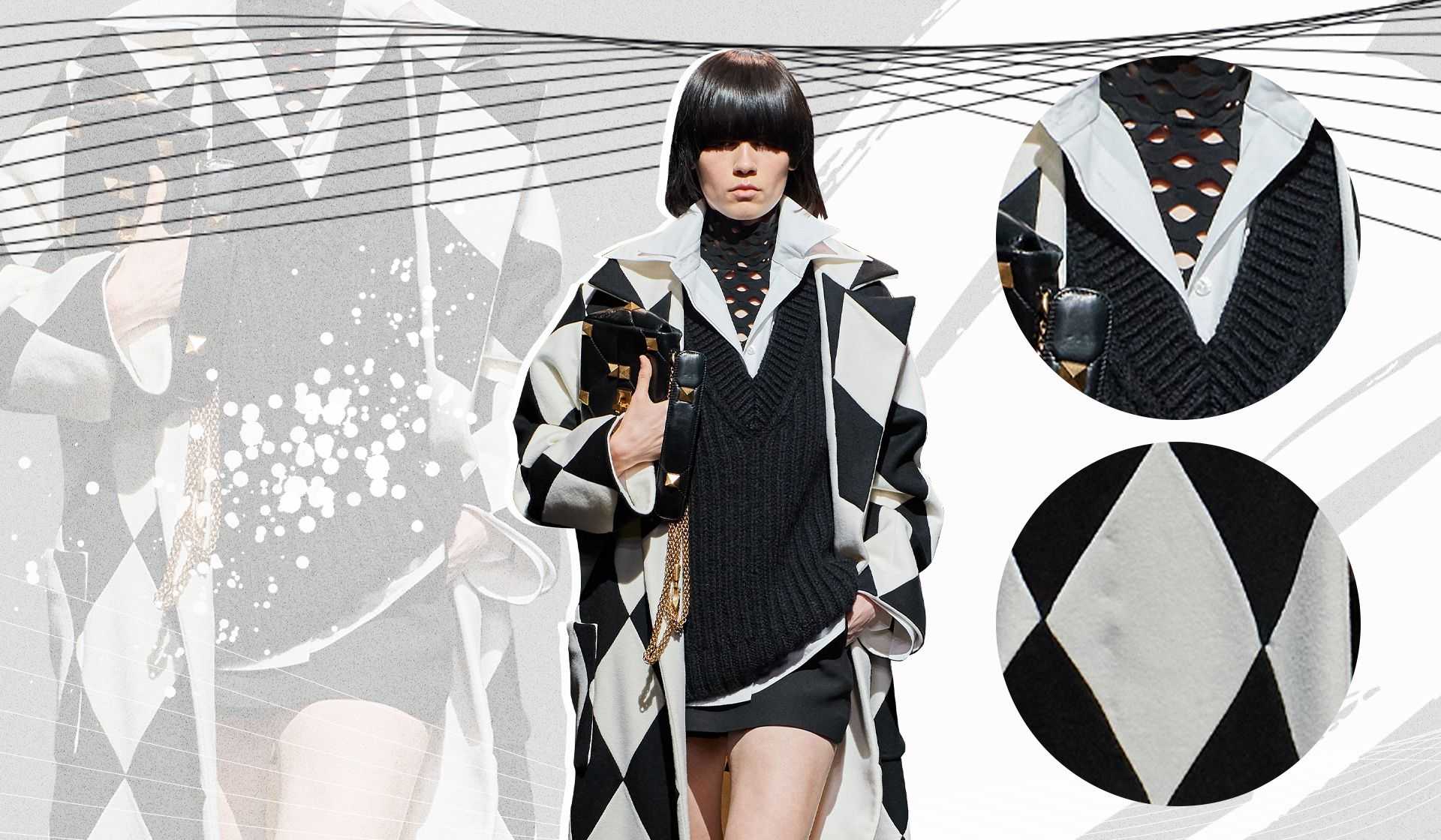 Несмотря на то что в оригинале костюм этого персонажа итальянских комедий был максимально ярким, Пьерпаоло Пиччоли, Мария Грация Кьюри и другие в этом сезоне оказались более благосклонны к черно-белой палитре и разместили этот узор на длинных пальто, полупрозрачных платьях и оверсайз-жакетах – идеальный выбор для всех, кто жаждет экспериментов с деловым стилем.