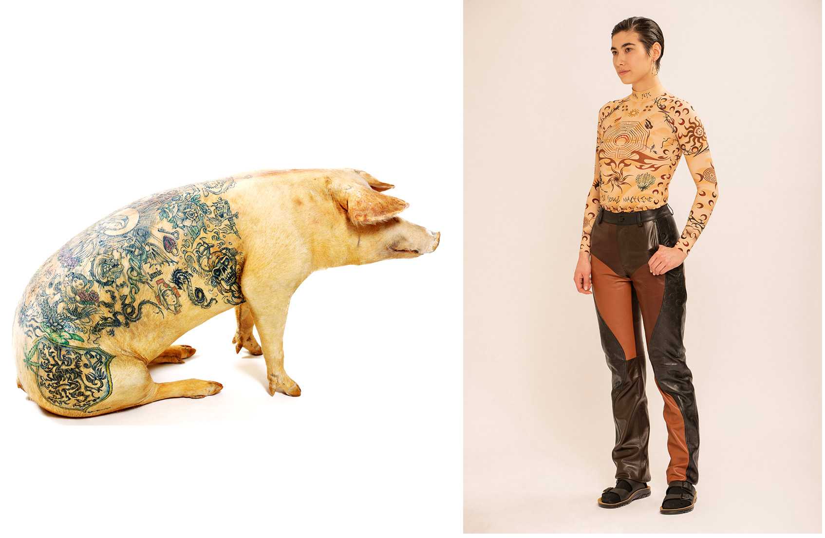В начале 2000-х в арт-кругах обсуждали проект Вима Дельвуа. Дельвуа — вегетарианец. Он спасал свиней от бойни, выкупая их, а затем содержал на арт-ферме до естественной смерти. Правда, не бескорыстно. На спинах животных художник набивал тату. После кончины поросят их шкуры продавал коллекционерам (рекорд — $150 тыс.). Этический подход Дельвуа в Европе не оценили. Из-за протестов организации по защите прав животных GAIA творец перенес ферму в Китай, где она работала до 2015 года.
