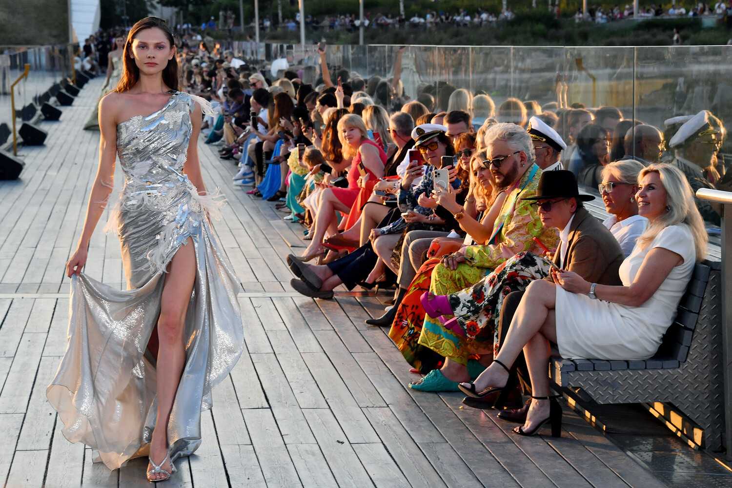 «По асфальту не шваркали», а Юдашкин действительно опоздал, демонстрировал коллекцию, которую из-за санкций не смог показать в Европе. Хуже коллекция не стала, не устарела и дефиле на «парящем мосту» собрало немало известных персон.