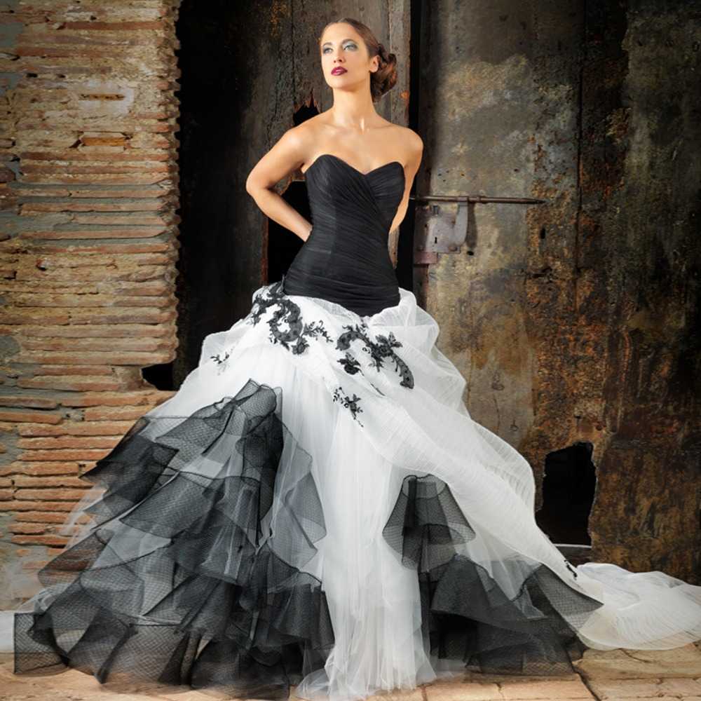- Можно выбрать модель, оставляющую открытыми плечи и дополняющуюся широким воланом, усиливающим впечатление романтичности.