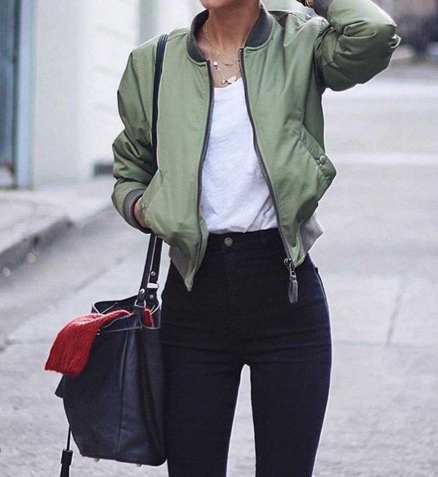 Куртка-бомбер — хороший вариант для осени и весны. Когда на улице прохладно и ветрено, надевайте под нее свитер или вязаное платье, когда выглядывает солнышко — рубашку c джинсами или юбкой.