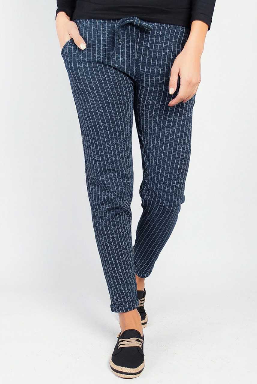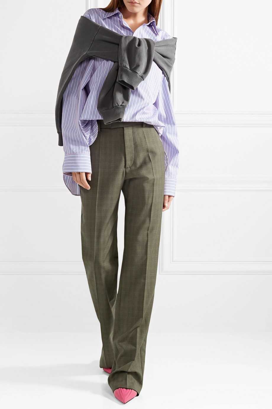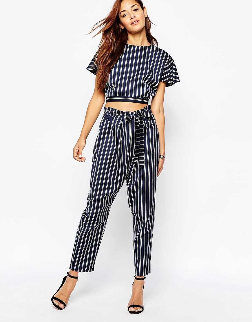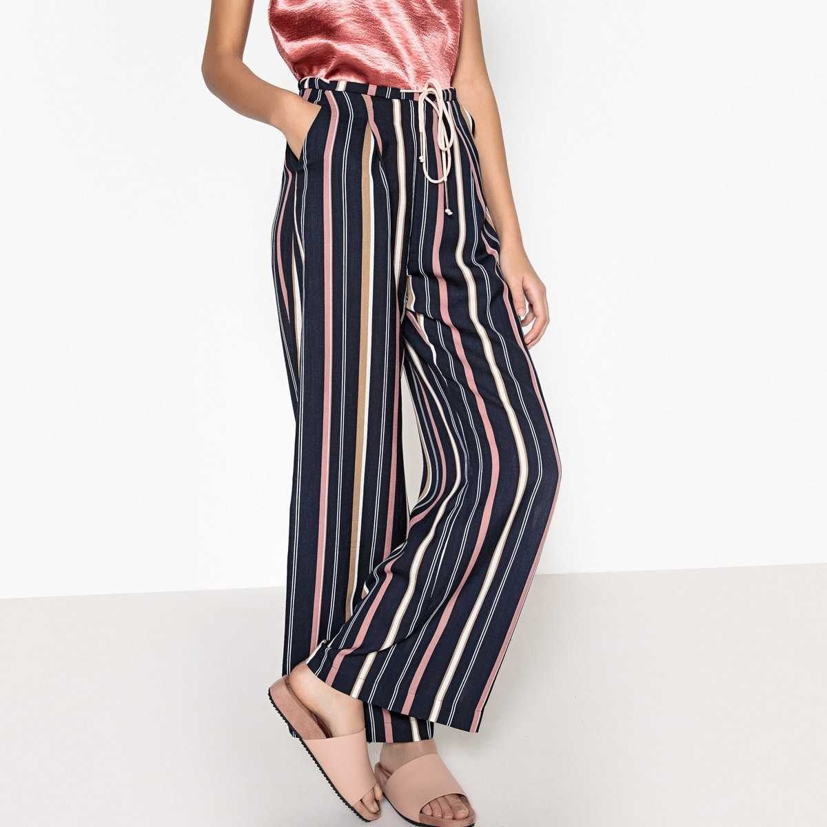 Широкие, удлиненные брюки с принтом в полоску прекрасно дополняют деловой стиль, смотрится элегантно, просто и стильно.