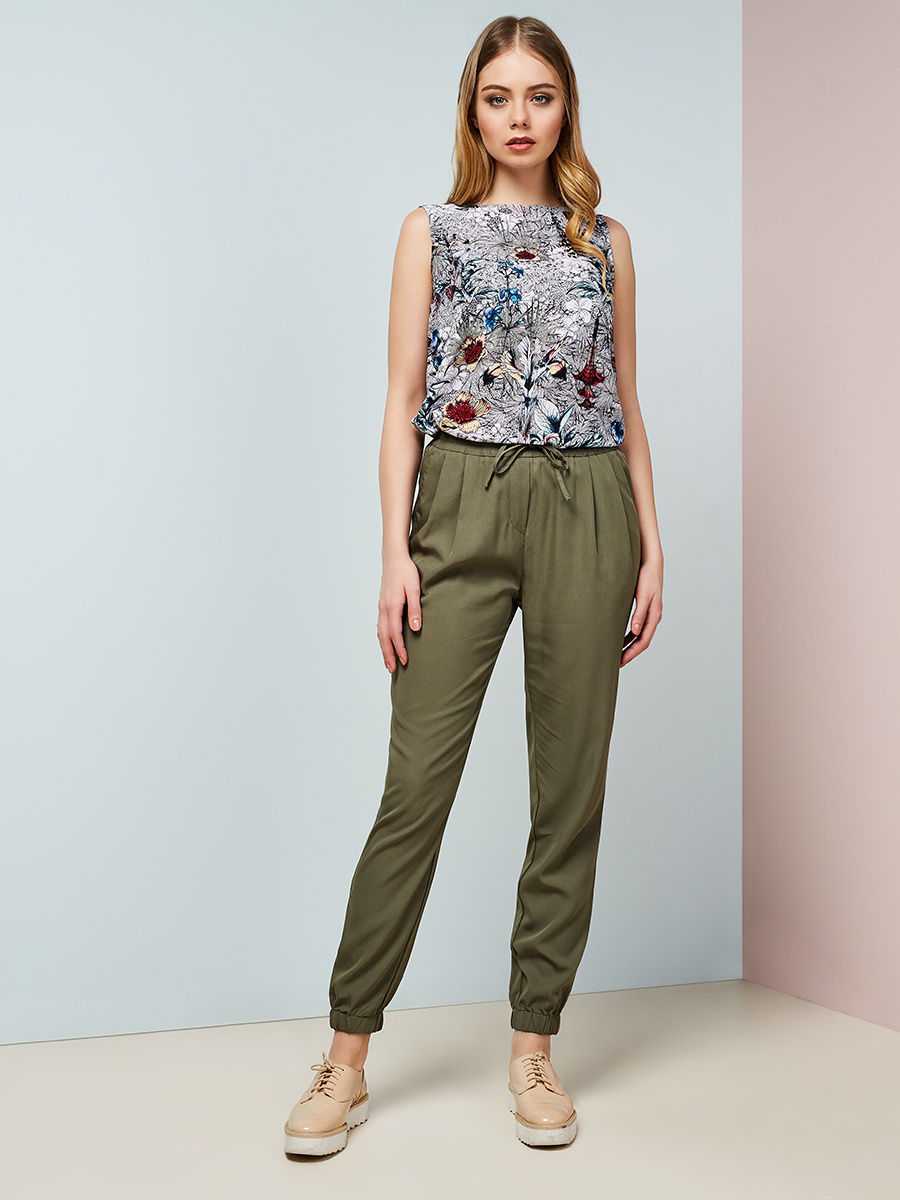 - Если вы поклонница романтического стиля, вам понравится сочетание штанов в стиле милитари и блузки с воланами и рюшами. А если сверху набросить косуху и обуть босоножки на шпильке, ваш образ точно не останется незамеченным.