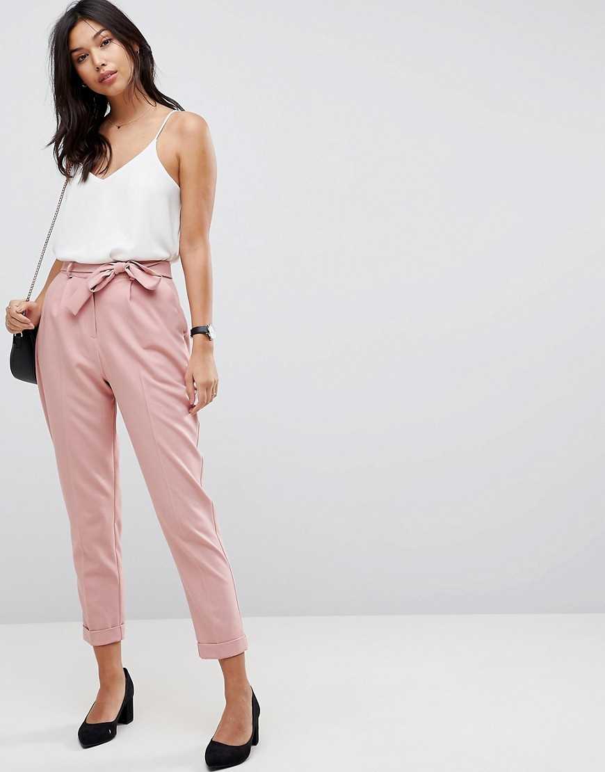 Весной 2019 рекомендациями ведущих стилистов являются широкие фасоны брюк, украшенные тонким ремешком на талии. Цветовая гамма и принты допускаются любые. Но большее предпочтение стилисты отдают теплым нюдовым тонам и цвету фуксия.