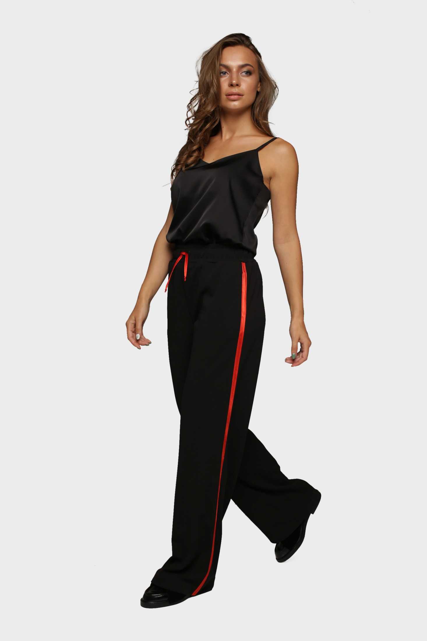 По цвету лампасы обязательно должны контрастировать с расцветкой штанов, в таком случае они визуально сделают силуэт стройнее, добавят общему ансамблю нотки игривости. Такие брюки отлично сочетаются со всевозможными вариантами верха — начиная от толстовок и свитшотов и заканчивая элегантными блузками, а также с любой обувью, на низком ходу и каблуке — выбор будет зависеть от стилевой направленности образа.