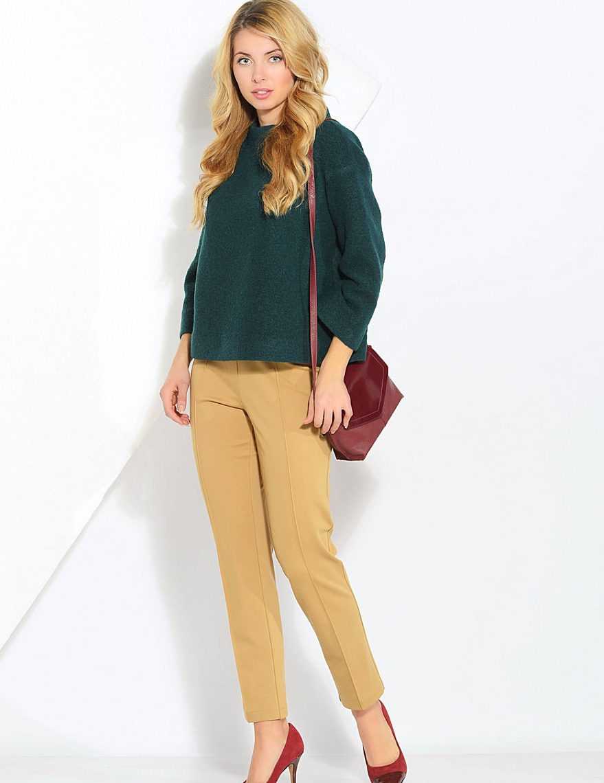 Нейтральные оттенки, свободный прямой крой, умеренно широкие штанины. Подобный фасон можно одевать и летом, и зимой (однако в холодное время года такие брюки нужно сочетать с более теплыми вещами, об этом — ниже).