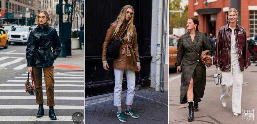 Сегодня в моде стиль 70-х, из этой эпохи можно подобрать широкие брюки-палаццо, которые подойдут для работы и на каждый день, блузы с бантом на шее, пальто в мужском стиле, сапоги до колена, свитеры с высоким воротом, коричневый цвет.