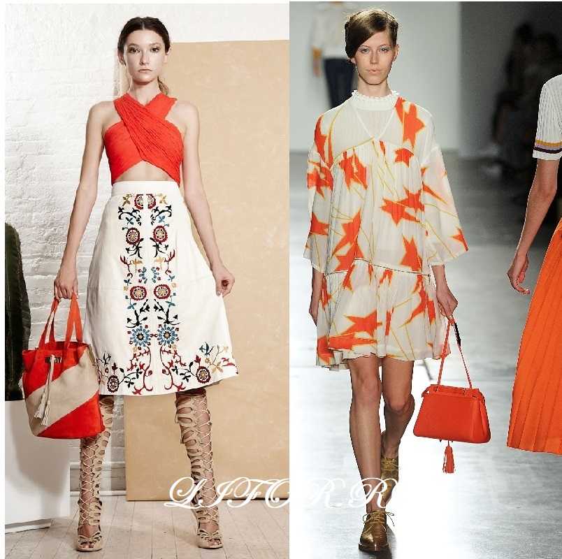 Показанные коллекции пестрят оттенками ярко-красного, почти кумачового, оранжевого, винного цветов. С ними соперничают за место в сердце модницы синий и зеленый, фиолетовый и горчичный. Оставив в прошлом красноватый коричневый оттенок на модную авансцену вышла «Красная заря». Она позволяет выглядеть всегда стильно, ярко и вызывающе