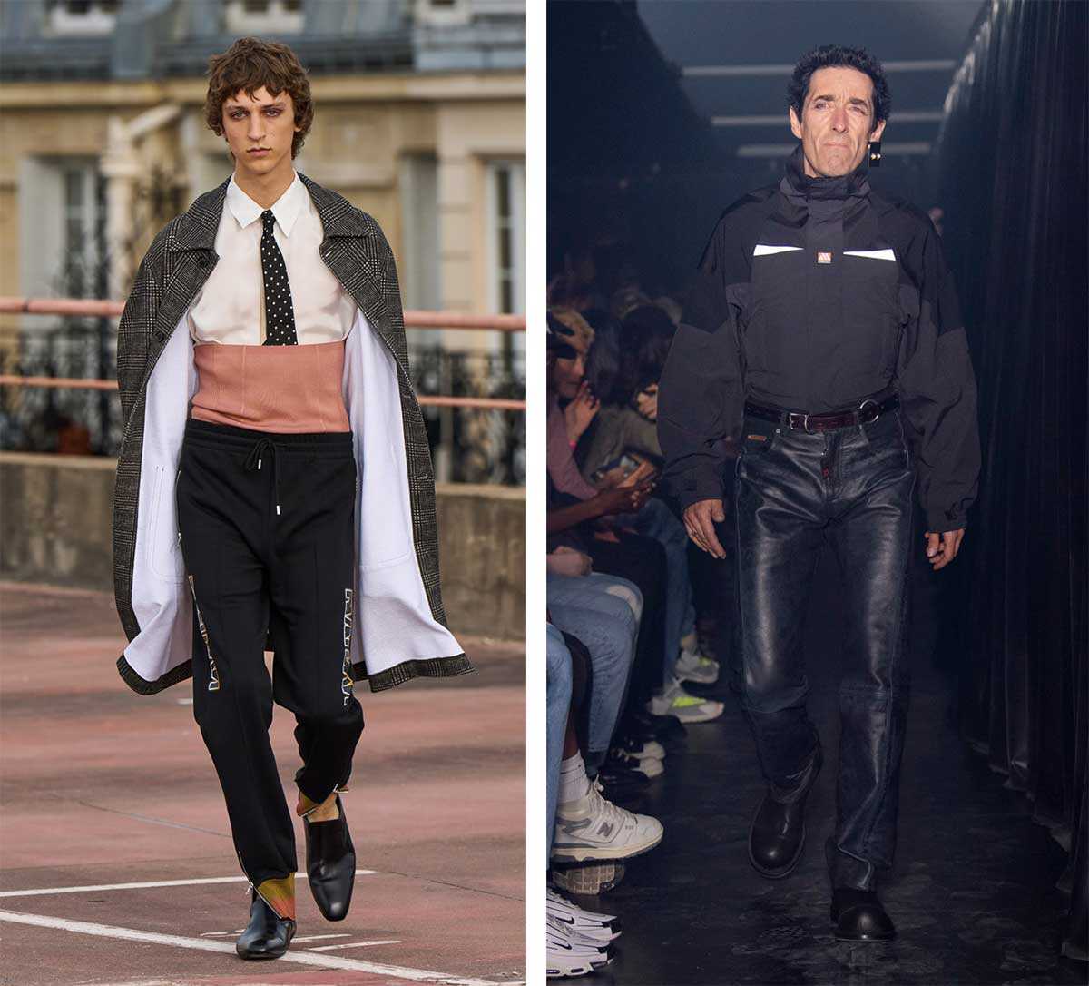 Знаем, все время таскать сумку со спортивной формой на работу неудобно, — дизайнеры, похоже, тоже знают и решают вопрос классным трендом. Спортивную форму теперь можно миксовать с деловым гардеробом. И тут вам не обойтись, во-первых, без доли юмора, а во-вторых, без искренней ностальгии по 1990-м. Так, например, Dries Van Noten предлагает нам вести разного уровня переговоры не иначе как в трениках и классических туфлях-«гробах», Martine Rose — в олимпийке, заправленной в строгие брюки, а Loewe — в тайтсах, строгом пиджаке и с борсеткой в руках. Готово! Вы восхитительны, к тому же внушаете страх и уважение сразу.