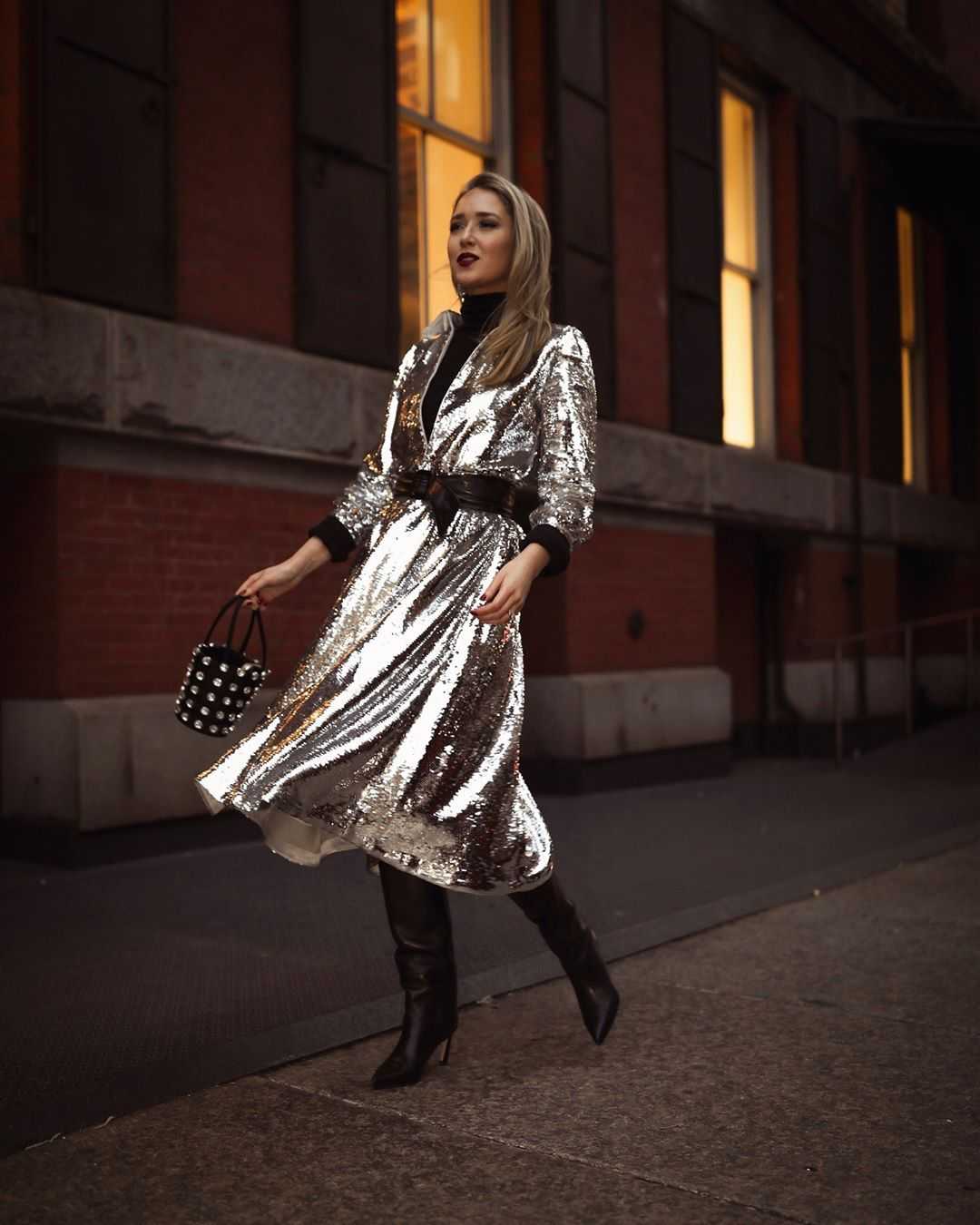 Наверное, у каждой модницы есть платье в бельевом стиле. Это тот самый тренд, который быстро набрал свою популярность. Интересно, что такой вариант уместен практически в любой ситуации, в том числе для празднования Нового года. При желании его можно обыграть с помощью жакета. Но в любом случае, такой наряд будет смотреться великолепно.