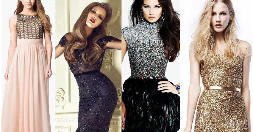 Как мы уже сказали, выбор платья полностью зависит от вашего вкуса, но, тем не менее, специалисты рекомендуют в данном сезоне приобретать модели, украшенные стразами, бисером, блестками и прочими яркими материалами. Если вам такие платья не по вкусу, то вы спокойно можете выбрать модель с гармонично сочетающимися пластинами.