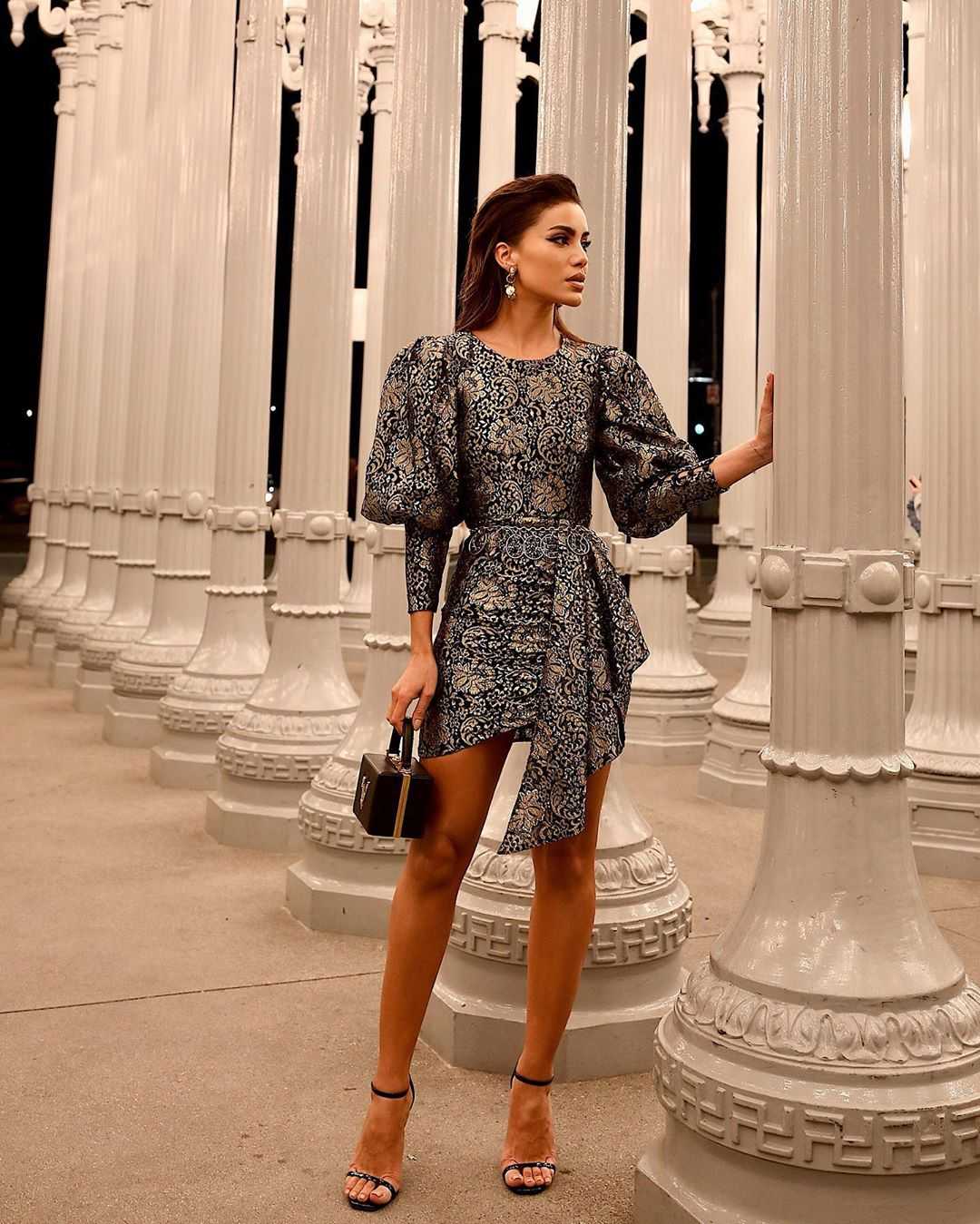 Вы также можете оставить место для фантазии и выбрать мини-платье с закрытым декольте как Сара Сампайо.