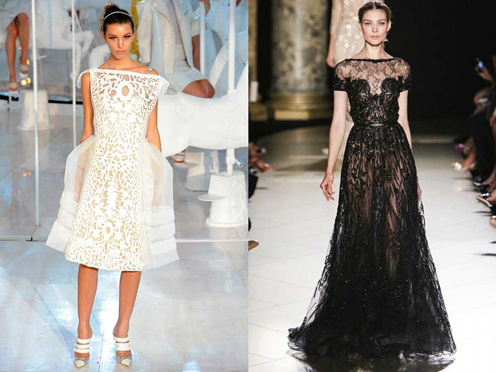 Кружево выглядит изысканно, элегантно, привлекательно и подходит для торжественного случая. В моде облегающие силуэты, подчеркивающие достоинство фигуры. Короткое мини, длиной до пола, с подолом со шлейфом или оборками — хороший выбор для вечера.
