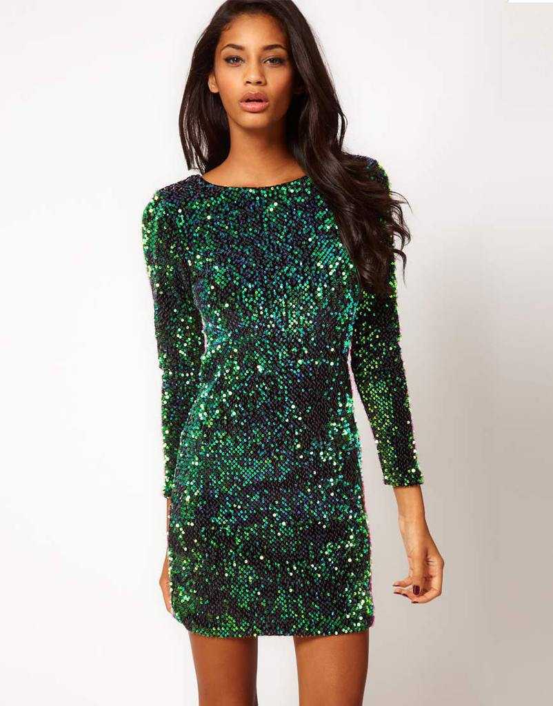 Представленные на фото новинки платьев на Новый год 2019 должны облегать на рукавах тонкую женскую ручку — выглядит это привлекательно и соблазнительно.