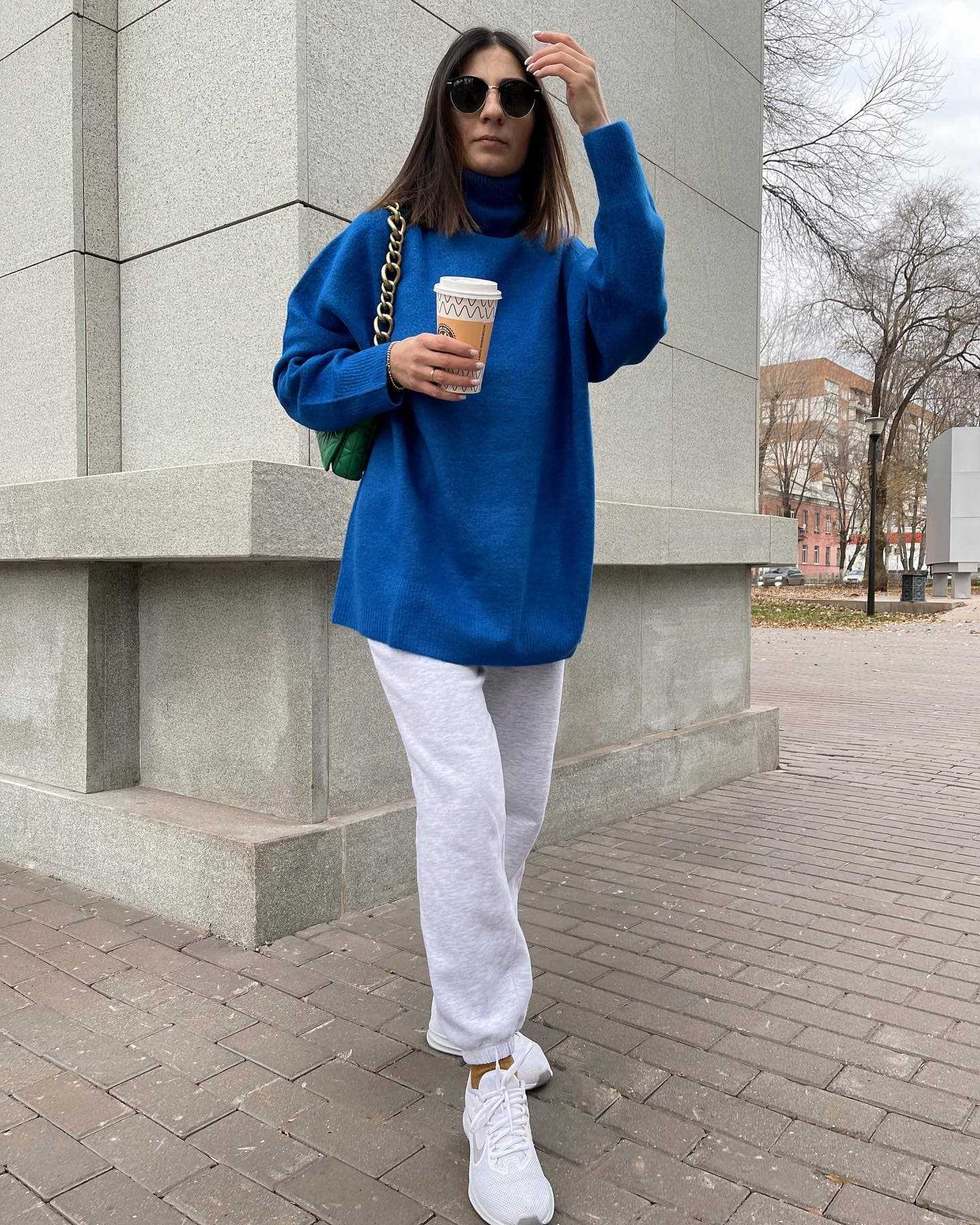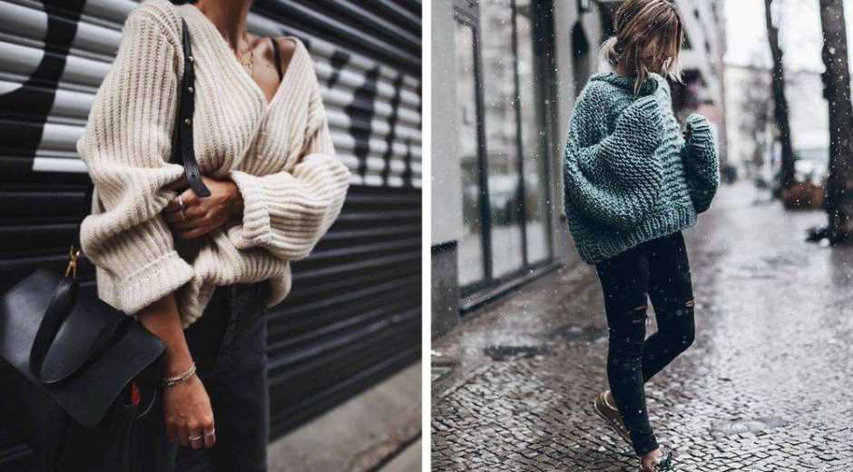 Носите его с грубыми ботинками, сапогами-казаками или высокими ботфортами контрастного цвета, а в качестве аксессуара используйте объемную сумку-тоут – зимой она смотрится более уместной, нежели миниатюрные модели. А для того, чтобы не замерзнуть холодным днем, смело миксуйте платье-свитер с модным пуховиком или теплым шерстяным пальто оверсайз.