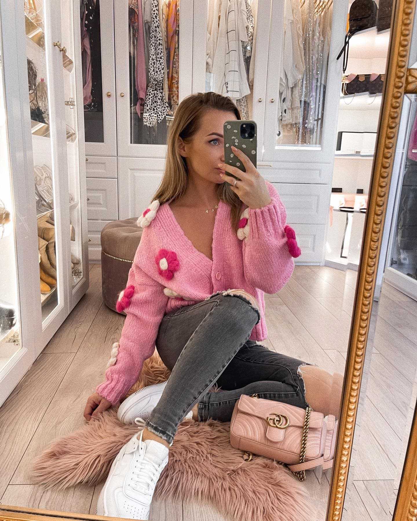 Короткий однотонный джемпер можно надеть с завышенными брюками или поверх струящегося платья с цветочным узором.
