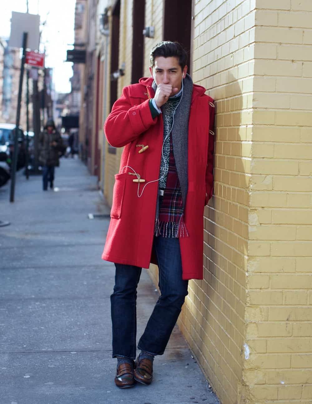 Конечно, можно подобрать дафлкот оригинальной расцветки – красный, бордовый, зеленый, синий, горчичный. Однако следует помнить, что к цветному пальто сложнее подобрать гардероб. Если Вы решились приобрести яркое пальто, подберите к нему одежду спокойных, нейтральных оттенков.