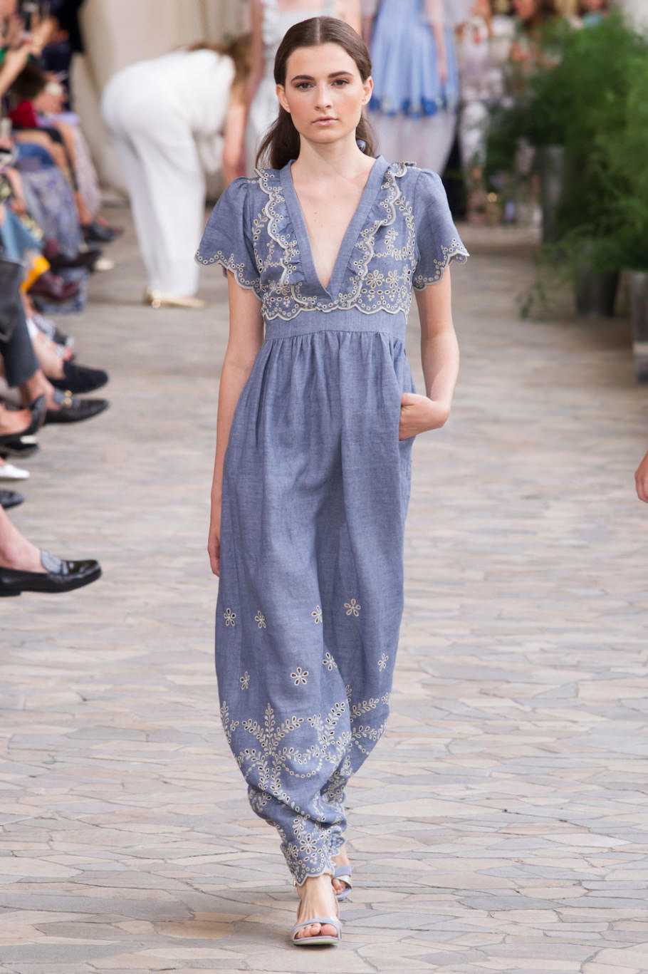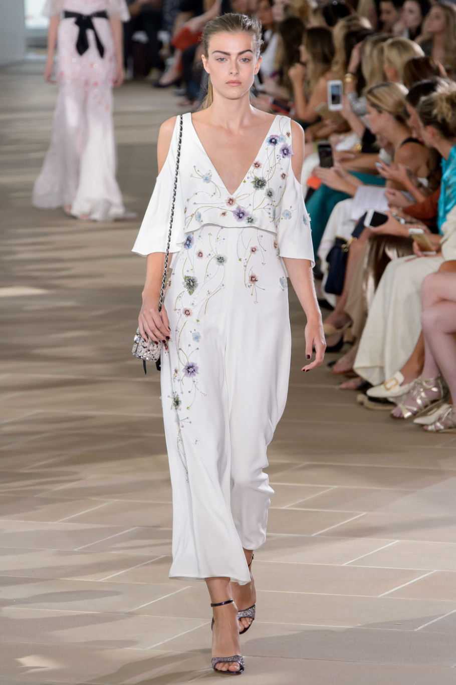 Иная тема – свобода до воздушности, никаких ограничений, нежность, красота и изящество. Ирреальные голубоватые цвета, ткань ниспадает, лишь намечая очертания фигуры, даже заметная кокетка на изделии Monique Lhuillier кажется цветочной паутинкой. Творения Emilio Pucci, Chirstian Siriano как летнее облачко, опустившееся на подиум.