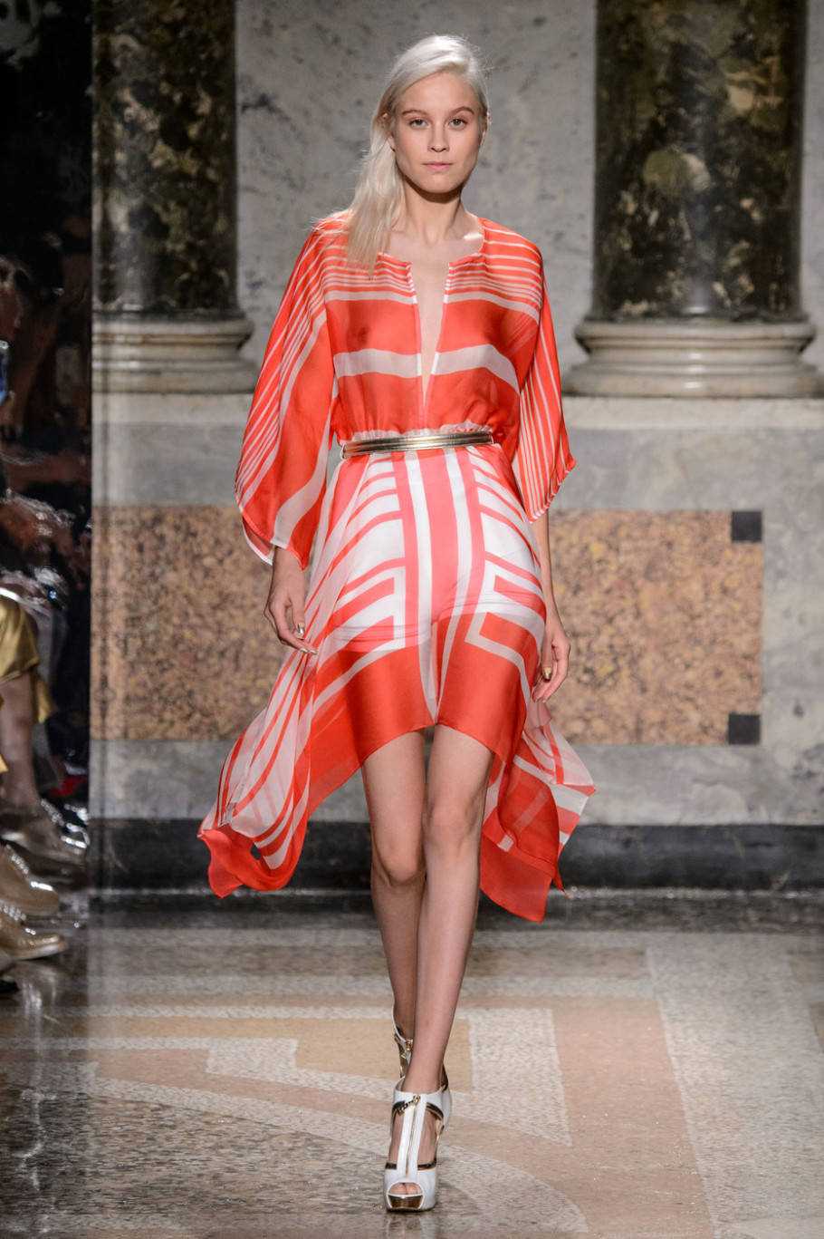 Знаковый пояс. Совершенно необязательно он должен бить контрастом, но первое, что мы отметим при взгляде на самые модные платья весна-лето 2017 это пояс. Смотрим у Aigner, Angelo Marani.