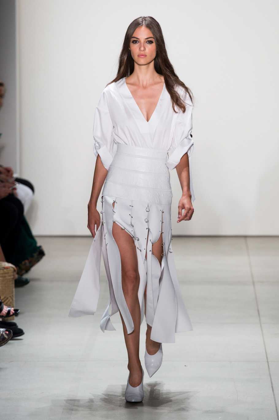 Рассеченный подол. Легкое и беззаботное настроение передают вещи, у которых подол разрезан на несколько тонких планок. Смотрим у Akris, Prabal Gurung, Blumarine (сразу 2 тренда вместе).