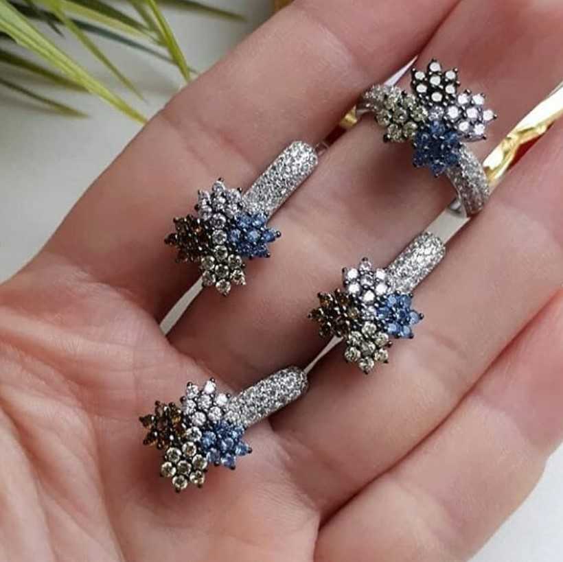 Цветовая гамма – от неброской пастели до насыщенных цветов, а иногда и практически восточные сочетания нескольких ярких камней в одном украшении.
