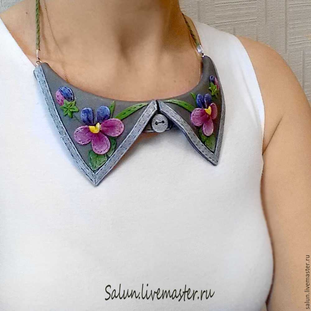 Важно выделить это украшение контрастным цветом. Чем массивнее украшение на шею, тем тоньше и легче должна быть одежда