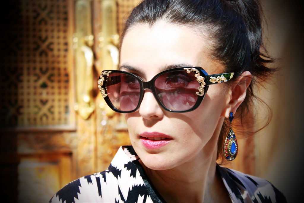 - Форму лица. Все мы разные: кому-то идут «капельки», кому-то более аккуратные очки, а кому-то что яркое и в стразах. Поэтому обязательно стоит все мерить и никогда не брать наугад.