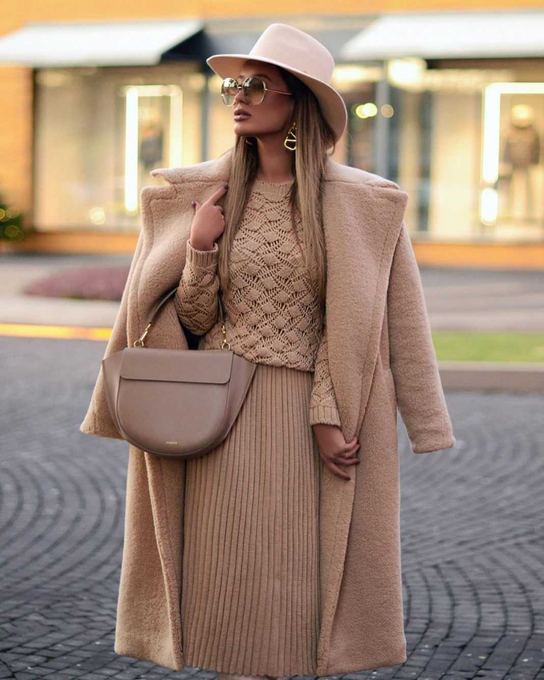 Однако выбрав пальто или длинную шубу нужно уделить особое внимание длине, она должна скрывать юбку, иначе будет визуально «резать» ноги