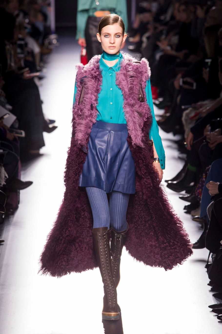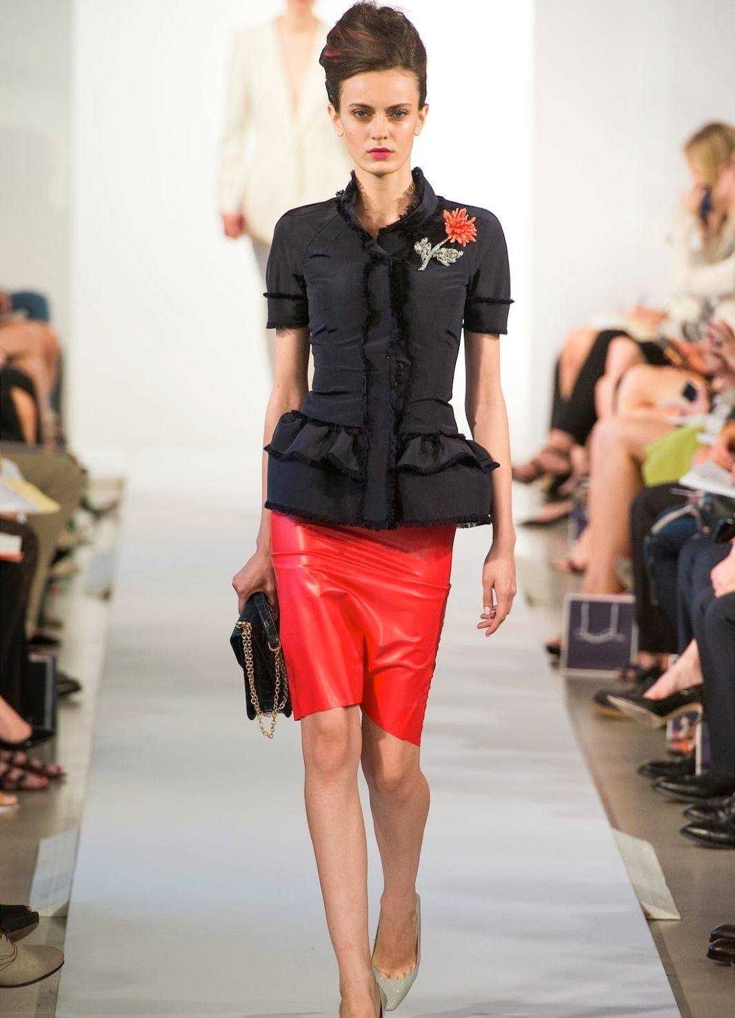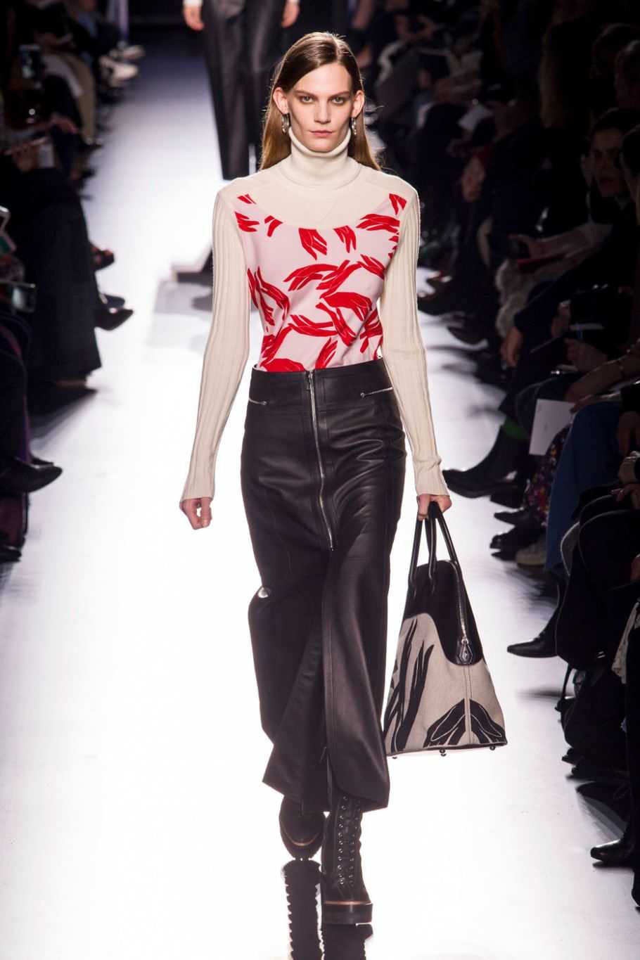 И несмотря на то, что черный цвет превалирует, на подиумах были замечены кожаные юбки ярких и светлых оттенков (Hermes).