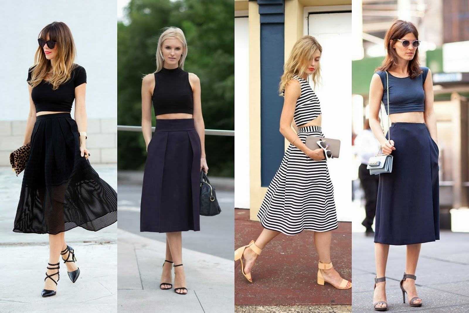 Разумеется, чтобы юбка с высокой посадкой была заметна в образе, её нельзя прятать под кофтами и блузами, скрывающими пояс. В целом, вы можете выбирать любой вариант, главное, чтобы он не полнил вас визуально, увеличивая ширину талии и подчёркивая живот.