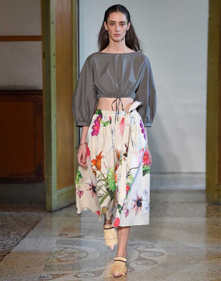 Модным трендом юбок станет их украшение принтами в цветочном стиле. Длинные юбки чудесно будут сочетаться со стильными аксессуарами, элегантными сандалиями на низкой подошве. Облегающие топы станут лучшим дополнением к длинной юбке. Просто замечательно если топ будет на тонких бретельках.